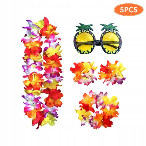 Naszyjnik hawajski zestaw kostiumów plaża damska przebranie sukienka wystrój pałąk róża czerwona