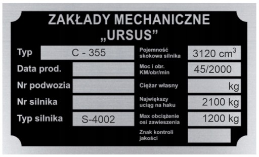 Oferta dotyczy tabliczki (1szt.) URSUS C355