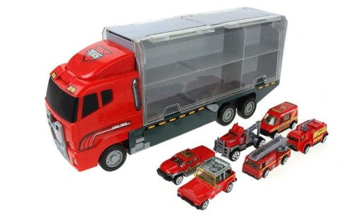 CIĘŻARÓWKA TIR TRANSPORTER + AUTA STRAŻ POŻARNA