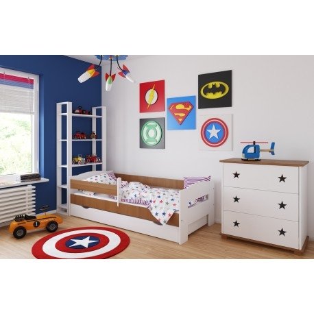 Prezentujemy Państwu komodę kolekcji GWIAZDKI . Komoda wykonana z wysokiej jakości płyty meblowej (gatunek I) i surowców zgodnych z wymaganymi normami. Jej zaokrąglone kształty i jakość tworzywa zapewnia niepodważalne bezpieczeństwo dla małego użytkowania. Komoda stoi na czterech nogach dzięki czemu jest bardzo stabilna a jednocześnie pozwoli na utrzymanie czystości nawet w tak trudnych miejscach. Szuflady montowane na prowadnicach rolkowych, umożliwiające łatwe przechowywanie garderoby dziecka. Zostały tak zaprojektowane by ich pojemne wnętrze usatysfakcjonowało każdego rodzica.