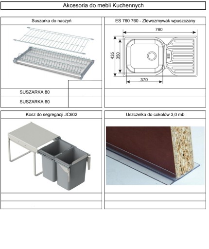 Aukcja dotyczy szafek: 80 ZL 2F, 80 D 2F, 60 D 3S, 40 D 1F - bez blatu