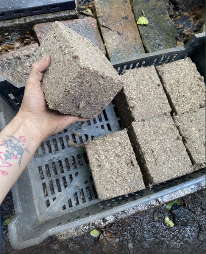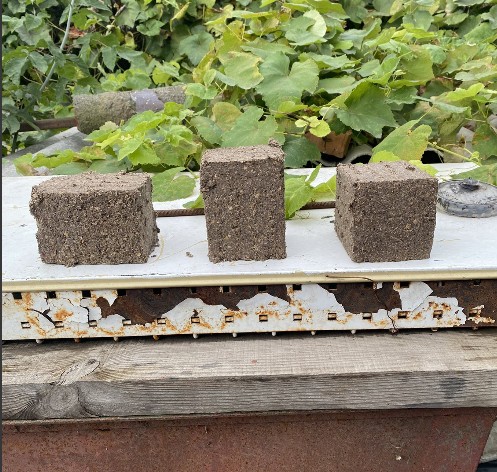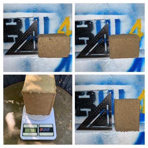 Prasa produkuje brykiety 10x10 cm 6 szt. o wysokości 10 cm w zależności od surowca.