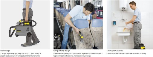 - ⭐ Puzzi 8/1 C pokazuje również swoje mocne strony podczas czyszczenia tapicerki wnętrz pojazdów: