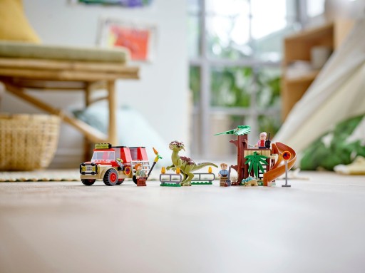 - Zestaw z Obozem Kredowym z Parku Jurajskiego zawiera trzy minifigurki: Bena, Brooklynn i Claire Dearing. W pudełku jest też stygimoloch i mały ankylozaur Bumpy, więc dzieci mogą do woli bawić się w odgrywanie ról.