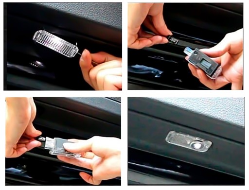 - Wyjąć fabryczną lampkę, która znajduje się w drzwiach