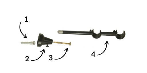 - Przykręć stopkę karnisza (2) wkrętem (1) do ściany;