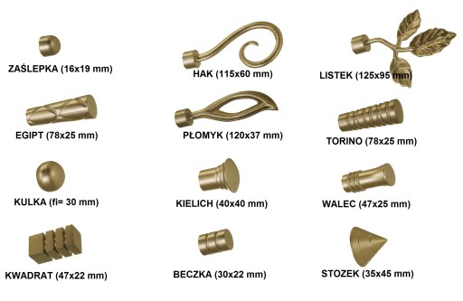 - karnisze metalowe fi 16, 16+16, 19, 19+19, 25, 25+16, 25+19;