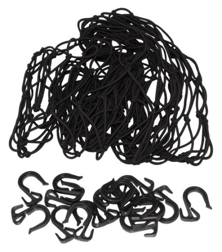 OPIS: BARDZO DUŻA SIATKA BAGAŻOWA WYKONANA Z ELASTYCZNYCH LINEK POŁĄCZONYCH RAZEM W SIEĆ. W ZESTAWIE ZNAJDUJE SIE 16 MOCNYCH, PODWÓJNYCH HACZYKÓW Z TWORZYWA SZTUCZNEGO. SIATKA UMOŻLIWIA W PROSTY I SZYBKI SPOSÓB ZAMOCOWAĆ BAGAŻ NA QUADZIE PRZPRAWOWYM, BAGAŻNIKU DACHOWYM AUTA, SKRZYNI ŁADUNKOWEJ PICK-UP'A LUB MAŁEJ CIĘŻARÓWKI. ZASTOSOWANIE OCZYWIŚCIE MOŻE BYĆ DUŻO SZERSZE, W ZALEŻNOŚCI OD POTRZEB UŻYTKOWNIKA. SIATKA CHARAKTERYZUJE SIĘ BARDZO WYSOKĄ JAKOŚCIĄ WYKONANIA.