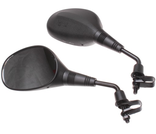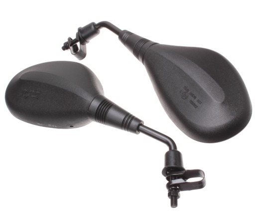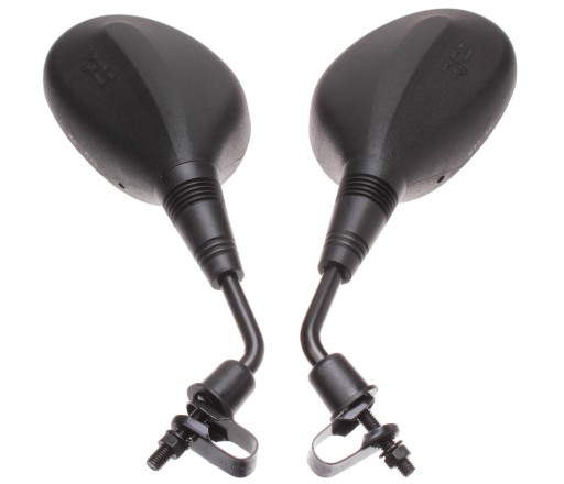 OPIS: KOMPLET LUSTEREK PRZEGUBOWYCH MONTOWANYCH NA KIEROWNICY ZA POMOCĄ OPASKI LUB ŚRUBY M8. SZKŁO LUSTERKA SFERYCZNE. LUSTERKO REGULOWANE PRZEGUBOWO Z HOMOLOGACJĄ E13.