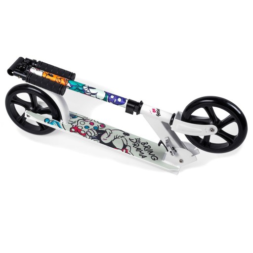 Doskonale zbalansowana i stabilna, dzięki czemu jest bezpieczna w użytkowaniu. Dodatkowo istnieje możliwość regulacji wysokości kierownicy, a więc hulajnoga rośnie wraz z dzieckiem.