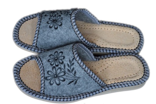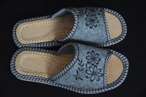 - Zewnętrzna część kapcia wykonana jest z wysokiej jakości filcu