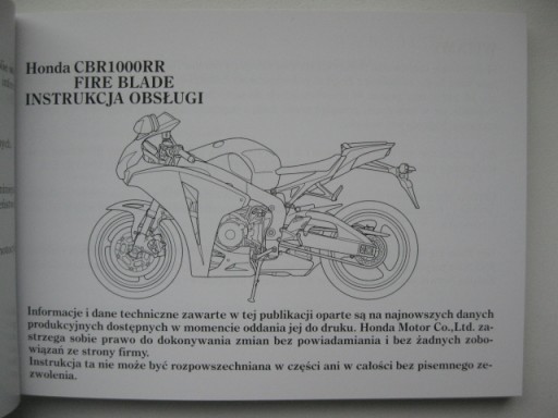 Honda CBR 1000RR FIRE BLADE Руководство по эксплуатации польское оригинал 2007/2008 г.