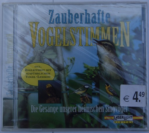 Nagrania popularnych europejskich ptaków. Wydanie niemieckie. Opisy w języku niemieckim, ale w książeczce są też ptaszki na zdjęciach wraz z nazwami.