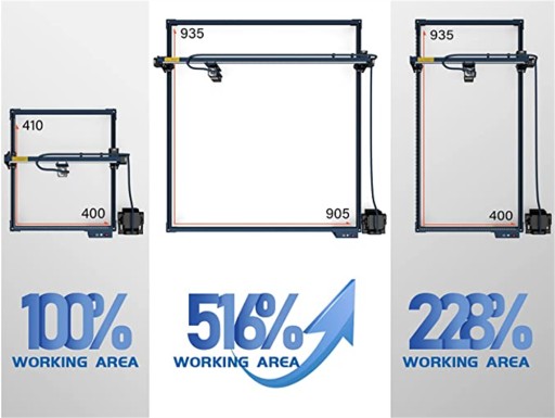 - Rozmiar obszaru grawerowania: wersja standardowa to 410*400mm, którą można rozszerzyć do 935x400mm lub 935x905mm (Zestaw aktualizacyjny sprzedawany oddzielnie)