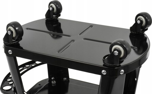 - W dolnej części tego stołka znajdziesz aż cztery przegródki na narzędzia - możesz tam odłożyć klucze, przedłużki, nasadki i tym podobne.