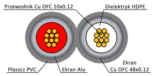 - Ekranowanie: folia ALU + siatka 48x0.12mm, miedź beztlenowa OFC 99.96%