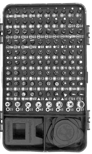 - Torx 5 ramion: T0,8; T0,8; T1,2; T1,2; T1,5; T1,50; T2,0; T2,0;