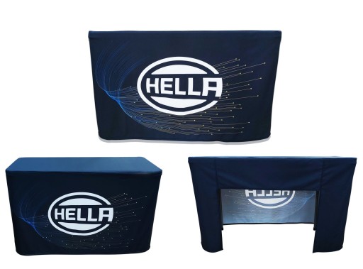 Obrus z logo firmy pozwoli jeszcze bardziej spersonalizować aranżację wnętrza i skutecznie promować przedsiębiorstwo.
