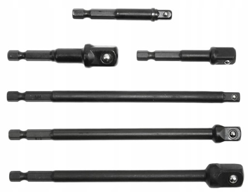 6-elementowy zestaw przedłużek udarowych z mocowaniem HEX.