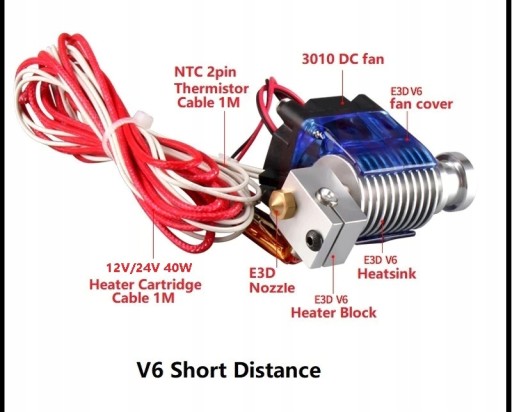головка принтера - E3D V6, КОРОТКАЯ -1,75мм. 12 В