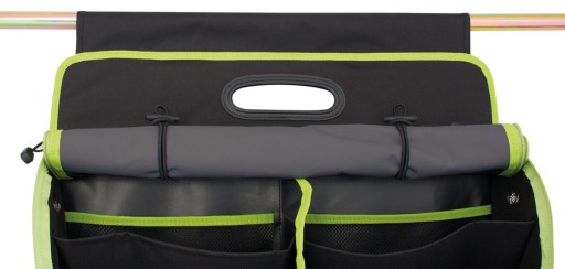 Posiada 8 praktycznych dużych kieszeni i 2 przegródki z siatki