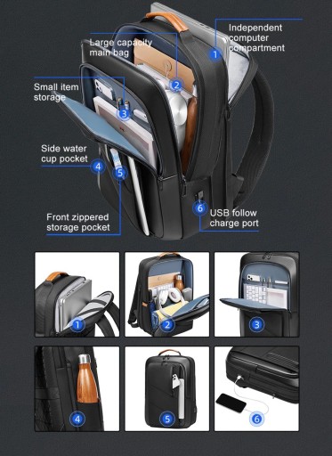 Plecak dwukomorowy marki Nigeer EC-2000A wykonany został z materiału odpornego na przedarcia i przecięcia, jest również odporny na warunki atmosferyczne. Konstrukcja plecaka daje możliwość powiększenia go o 5cm poprzez rozpięcie dodatkowego zamka. W komorze z tyłu plecaka to miękka, welurowa kieszeń na laptop w rozmiarze do 17,3". Środkowa komora jest duża i pojemna, przeznaczona na zapakowanie ubrań i większych rzeczy. Znajdują się tu również dwie kieszonki oraz złącze do power banka z zewnętrznym gniazdem USB, znajdującym się z boku plecaka. Z przodu plecaka znajduje się spora kieszeń, w której znajduje się organizer na drobiazgi oraz zaczep np. na klucze. Z przodu plecaka znajduje się jeszcze zapinana pionowo na zamek kieszeń na podręczne rzeczy oraz druga mała kieszonka. Profilowane szelki plecaka wyłożono sprężystymi gąbkami zwiększającymi komfort w trakcie noszenia. Pod szelkami umieszczono pas umożliwiający założenie plecaka na rączkę torby podróżnej. Na jednej z szelek umieszczono malutką kieszonkę na kartę lub identyfikator. U góry plecaka znajduje się uchwyt służący do przenoszenia plecaka w ręce. Model Nigeer EC-2000A polecamy osobom potrzebującym pojemnego i funkcjonalnego plecaka.