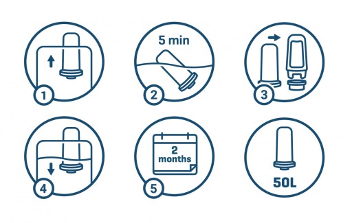 - Wydajność filtra wody: 50l lub 1000 filiżanek lub 2 miesiące
