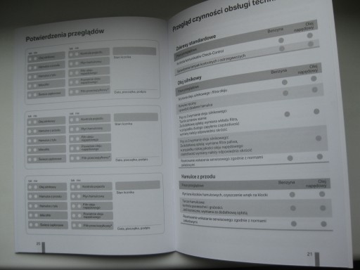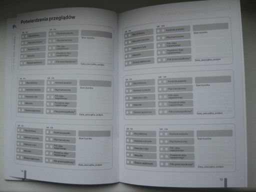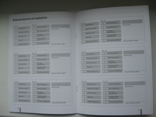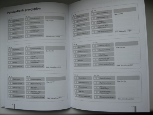 Oryginalna Polska książka serwisowa (przeglądów) do samochodów