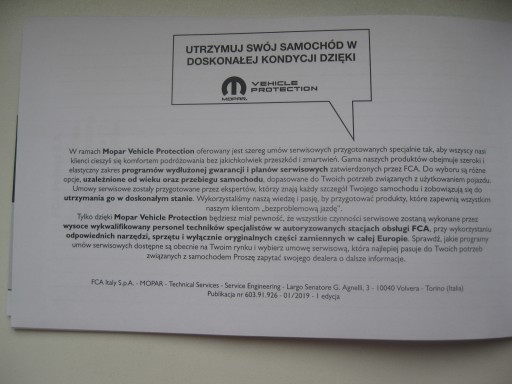 Jeep książka serwisowa przeglądów Jeep 2019 rok PL