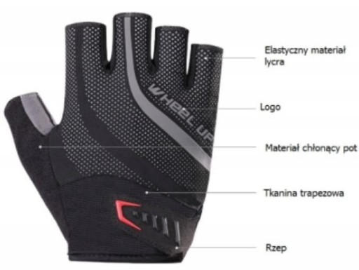 Rękawiczki Wheel UP są idealnie dopasowane do dłoni. Efekt taki uzyskano dzięki bardzo elastycznemu materiałowi wierzchniemu. Spód został wzbogacony o żelowe silikonowe wstawki, które zapewniają pewny i komfortowy chwyt.