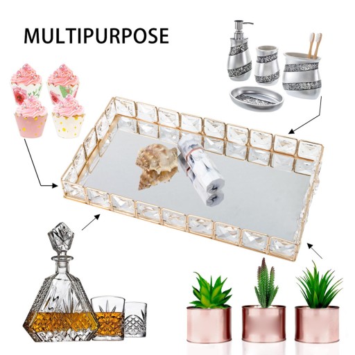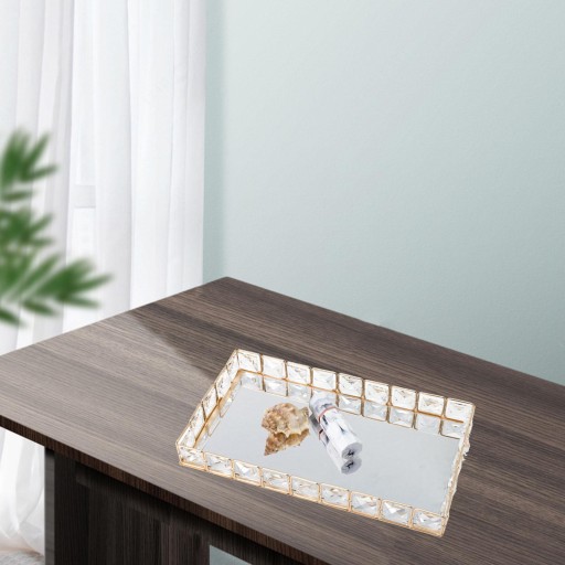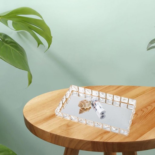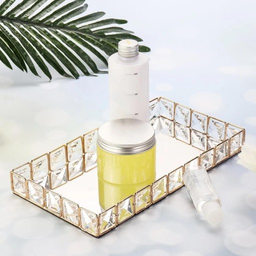Glam Mirror Crystal Taca kosmetyczna Ozdoba do makijażu Vanity Organizer Prostokąt