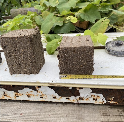Prasa produkuje brykiety 10x10 cm 9 szt. o wysokości 10 cm w zależności od surowca.
