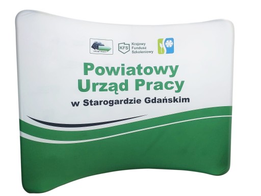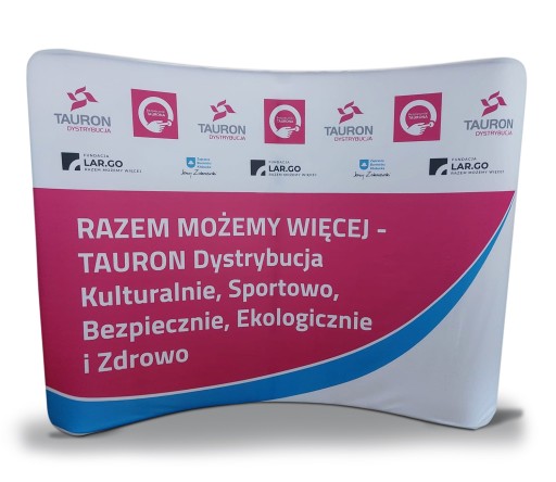 Ścianka świetnie prezentuje się z trybunką i roll-upami sprzedawanymi na innych naszych aukcjach.