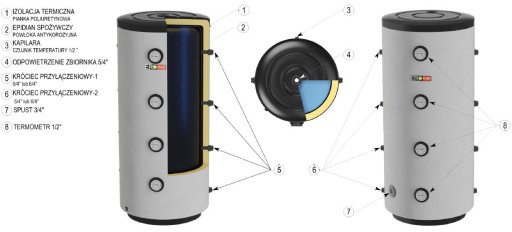 Zasobnik produkowany jest z w bardzo skutecznej technologii termoizolacyjnej z wykorzystaniem pianki komórkowo zamkniętej o odpowiednio dobranej grubości co pozwala na minimalne straty cieplne.
