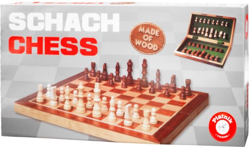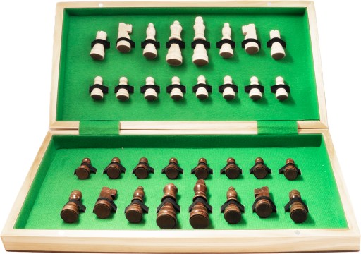 Szachy wykonane z drewna. Wymiar szachownicy 42 x 42 x 3 cm. Król o wys. 7,7 cm.