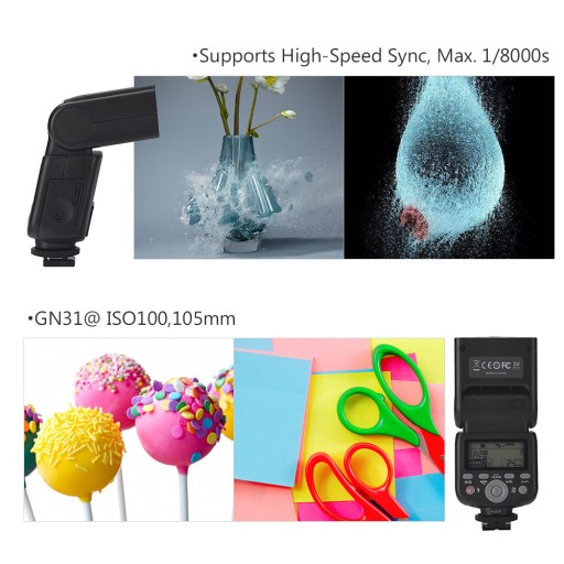 --YN320EX obsługuje flashowanie TTL i synchronizację z dużą szybkością (HSS). Maksymalna szybkość synchronizacji wynosi do 1 / 8000s; czas recyklingu dla pełnej wydajności wystarczy na 2 sekundy, co zapewnia szybkie odzyskiwanie energii.