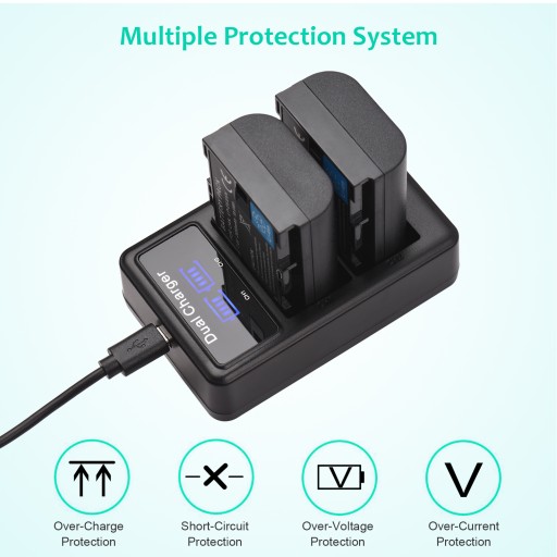 Efektywne ładowanie: podwójna ładowarka może ładować jednocześnie dwie baterie, skutecznie oszczędzając czas ładowania.