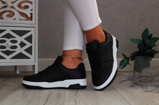 Damskie buty sportowe w kolorze czarnym z białymi elementami. ❤ Wykonane z dobrych jakościowo materiałów. Sprawdzą się jako obuwie codzienne oraz sportowe. 😍 Sneakersy są lekkie i zapewniają wygodę oraz komfort użytkowania. Podeszwa stabilna, dobrze amortyzuje stopę. Łatwe w utrzymaniu w czystości- wystarczy przetrzeć wilgotną ściereczką. 👍 Modny fason z najnowszej kolekcji 2022 idealnie dopasuje się do wielu stylizacji! Dobrze prezentuje się na nodze. 💯