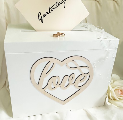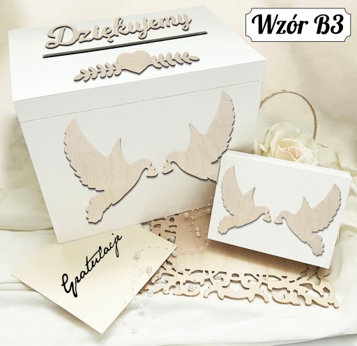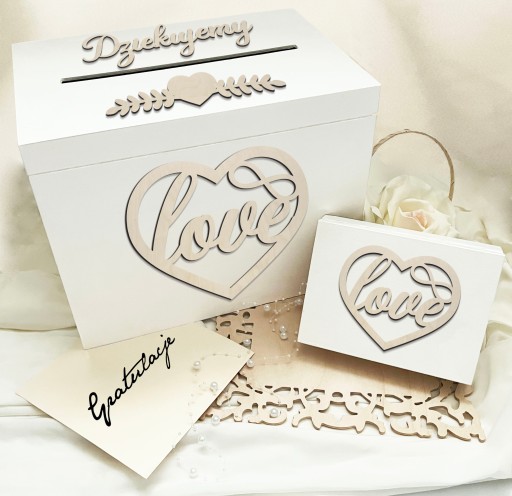 Ich delikatne białe wykończenie dodaje subtelnej elegancji każdej uroczystości. Idealne na przechowywanie najważniejszych elementów ceremonii ślubnej, ten zestaw nie tylko zachwyca swoim wyglądem, ale również zapewnia praktyczne rozwiązanie na przechowywanie prezentów od gości i symboli miłości. Doskonały wybór na wesele, tworząc wyjątkową atmosferę pełną klasy i elegancji.