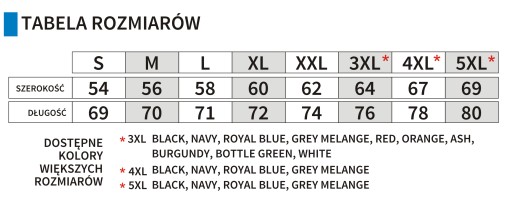Rozmiar S M L XL XXL 3XL 4XL 5XL