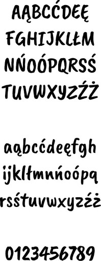 a - 237x215mm, ą - 237x318mm, b - 247x304mm, c - 204x234mm, ć - 223x348mm, d - 254x295mm, e - 196x214mm, ę - 196x324mm, f - 213x304mm, g - 243x311mm, h - 267x283mm, i - 146x295mm, j - 167x394mm, k - 263x287mm, l - 133x289mm, ł - 144x286mm, m - 365x199mm, n - 261x203mm, ń - 267x331mm, o - 211x215mm, ó - 211x339mm, p - 254x309mm, q - 255x312mm, r - 222x198mm, s - 196x214mm, ś - 209x338mm, t - 176x301mm, u - 267x215mm, v - 257x220mm, w - 330x220mm, x - 266x210mm, y - 267x326mm, z - 212x212mm, ź - 231x342mm, ż - 212x283mm