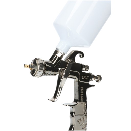 Pistolet lakierniczy W500 jest pistoletem wykonanym w systemie średniociśnieniowym.