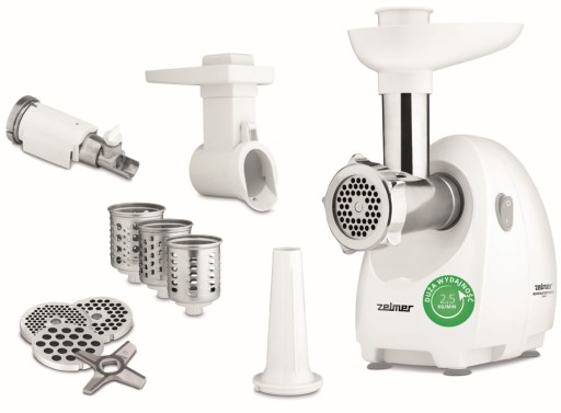 Maszynka do mięsa ZELMER dzięki wysokiej mocy 1900 W potrafi zmielić 2,5 kg mięsa na minutę. Zestaw zawiera różne rodzaje sitek, szatkownicę oraz wyciskarkę do miękkich owoców, dzięki czemu może służyć nie tylko do mielenia mięsa, ale również do innych prac kuchennych. Wbudowane sprzęgło zabezpiecza silnik przed zablokowaniem. Dzięki temu możesz bezpiecznie oddać się swojej pasji gotowania. Do zestawu dodajemy również popychacz, który pozwoli, w bezpieczny dla Twoich palców sposób, używać maszynkę.