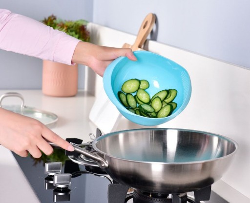 Dzięki połączeniu miski i cedzaka w jedno naczynie zaoszczędzisz mnóstwo miejsca w Twojej kuchni!