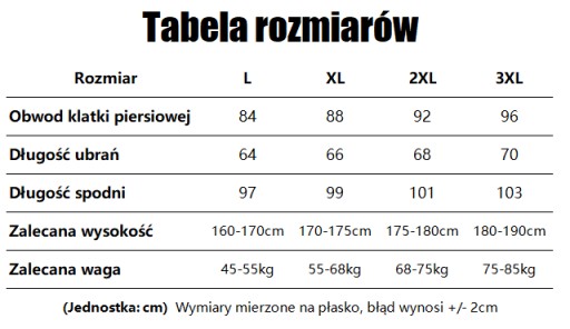 Proszę zapoznać się z tabelą rozmiarów do zakupu