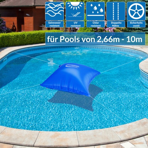 Odporne na rozdarcie poduszki basenowe firmy monzana® chronią Twój przykryty basen przed mrozem, zapobiega przymarzaniu plandeki do wody w basenie.