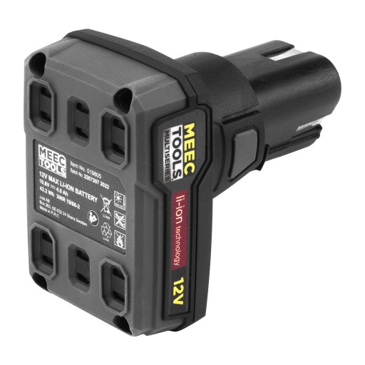 Uzupełnij narzędzia 12 V potężnym akumulatorem 4 Ah! Ten akumulator o dużej mocy ze wskaźnikiem naładowania jest przeznaczony do narzędzi i urządzeń ogrodowych z serii Meec Tools Multiseries i objęty roczną gwarancją.