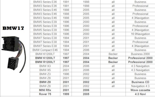BE6507(E39 BMW Business), PH7030(BMWBusiness), PH8030(BMW Business CD), CD53 E39/53(BMW Business CD,Alpine),itd.