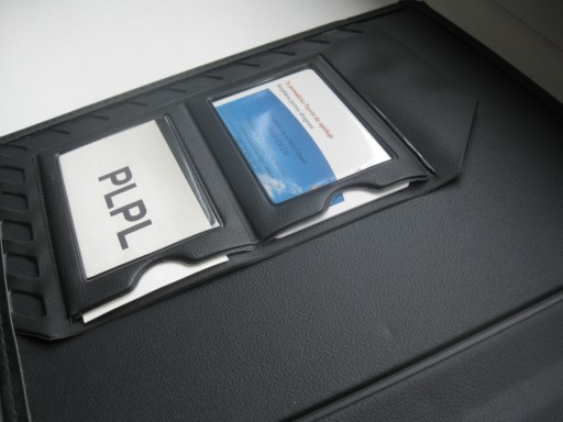 Po otwarciu specjalne kieszonki na wizytówki oraz chromowany segregator