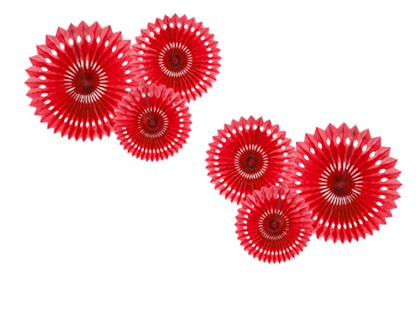 - Rozety dekoracyjne Sweet Love, W opakowaniu znajduje się 6 rozet w trzech różnych rozmiarach. Ich średnice po złożeniu wynoszą ok. 20 cm, 25 cm i 30 cm. Rozety są gotowe do powieszenia, wystarczy je tylko rozłożyć. Posiadają sznureczek do zawieszenia.